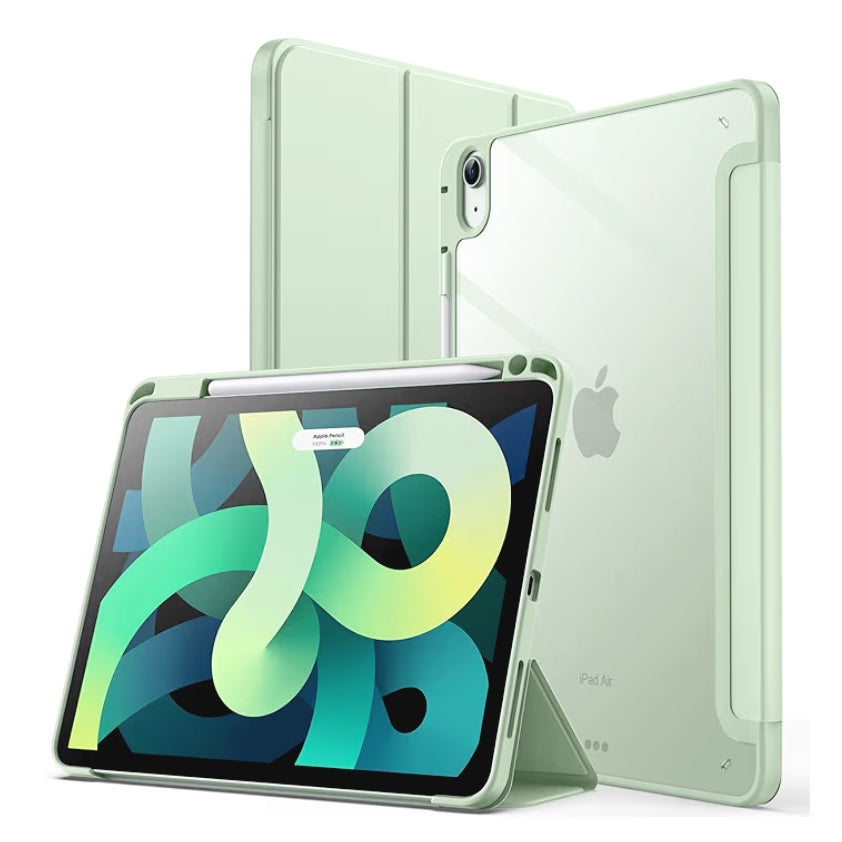 Cubre todos los bordes de la tablet y monta por arriba para darle mayor protección. Fácil acceso a todos los controles y funciones de la tablet, respeta botones y entradas dejando libre los puertos. Tiene un espacio para el pencil lo que hace que sea mucho más práctico.