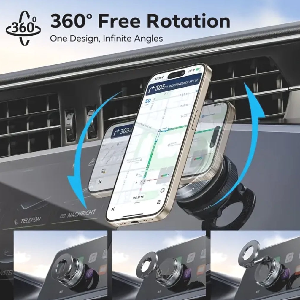 Soporte de coche para salpicadero se ajusta a tu móvil gracias a su extensible que agarra bien fuerte el teléfono. Rotación de 360 grados y puede ser compatible para todos los teléfonos móviles.